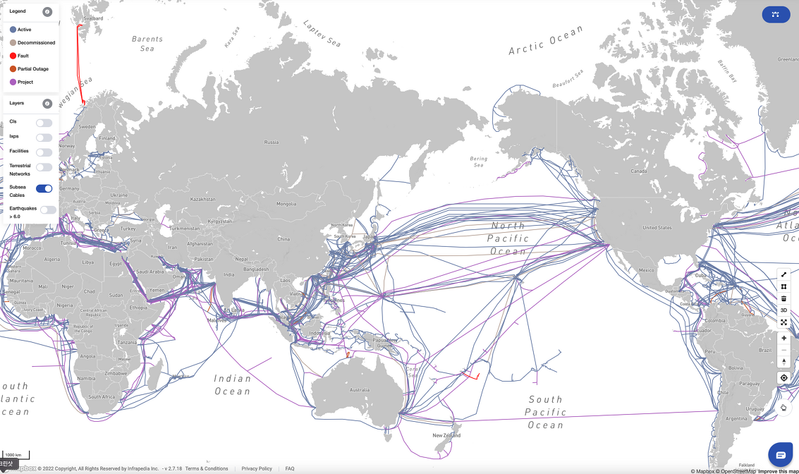 신기한 해저케이블 맵. 아래 링크에서 볼 수 있다.
